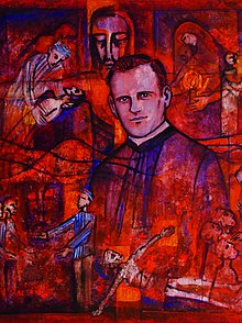 Beate Heinen hat das Bild von Richard Henkes mit Stationen aus seinem Leben gemalt. Der gesprochene Text stammt von ihr in Zusammenarbeit mit Pallottiner-Pater Hubert Lenz.