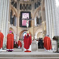 Seligsprechung Richard Henkes Gewalt in Liebe umgewandelt Meldung Bistum Limburg Das Bild des neuen Seligen wird enthüllt. RUPPACH-GOLDHAUSEN/ROM/LIMBURG, 15.09.2019 Gewalt in Liebe umgewandelt Richar
